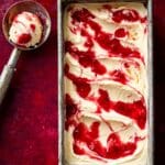 A creamy and luscious no-churn strawberry jam ripple ice cream that blends the richness of double cream with sweetened condensed milk, infused with fresh lemon zest and juice, and swirled with soft-set strawberry jam for a delightful fruity twist.