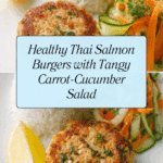Keywords: salmon burgers, healthy fish burger, Thai salmon recipe, carrot cucumber salad, quick healthy dinner