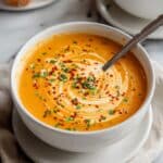 Store leftover soup in an airtight container in the refrigerator for up to 4 days. Reheat gently on the stove over low heat, stirring frequently. Avoid boiling after reheating to keep the coconut milk smooth. This soup can also be frozen for up to 3 months; thaw overnight in the fridge before reheating.