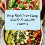 This Thai curry noodle soup is a vibrant and comforting dish that combines the fragrant flavors of green curry with tender prawns and fresh vegetables. It’s quick to prepare, perfect for a weeknight meal, and packed with aromatic herbs for an authentic taste.
