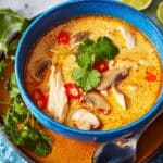- Serve: Ladle the soup into bowls and sprinkle the coriander leaves over the top for a fresh herbal finish. Serve hot and enjoy the vibrant flavors of this Thai coconut chicken soup.