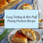 These Turkey & Brie Puff Pastry Pockets are a delightful and savory treat perfect for lunch, snack, or a light dinner. Crispy puff pastry envelops tender turkey, creamy Brie, and a hint of mustard, creating a delicious combination that’s easy to prepare and sure to impress.