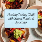 Keywords: turkey chili, healthy chili, sweet potatoes, kidney beans, avocado topping, spicy turkey mince