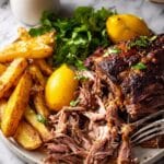 Keywords: slow roasted lamb, lamb shoulder recipe, slow cooking lamb, Greek lamb recipe, fall apart tender lamb, lamb jus, oven slow roast