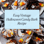 Celebrate the spooky season with this fun and festive Vintage Halloween Candy Bark. It’s a simple, no-bake treat that combines creamy candy melts with colorful sprinkles and candy corn for a delightful Halloween snack.
