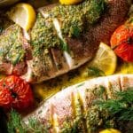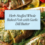 Keywords: whole baked fish, snapper recipe, herb stuffed fish, garlic dill butter sauce, baked snapper, healthy fish recipe